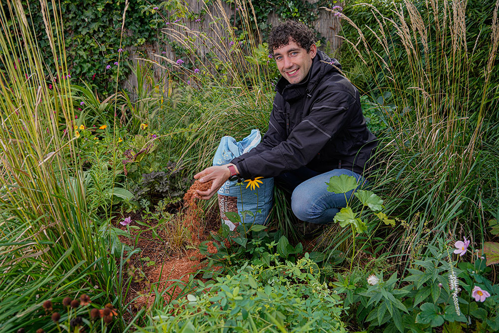 Danny vertelt verder: ‘Als het regent staat bij sommige mensen al snel de tuin blank. Dat is natuurlijk vervelend. Het komt omdat ze hun tuin bijna helemaal dicht hebben gestraat. Het is dan verleidelijk om aan symptoombestrijding te doen, dus snel een passende oplossing te bedenken. Beter is het om vooraf goed na te denken hoe je kunt voorkomen dat je tuin onderloopt. Maak daarom bodem en water leidend bij het inrichten van je tuin. Zorg daarbij voor de juiste balans tussen verharde en onverharde delen. Zo krijg je een levende tuin met genoeg ruimte voor de natuur.’