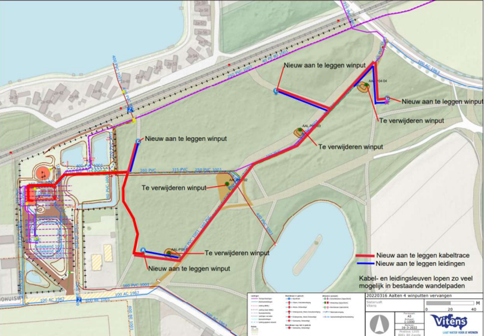Na het uitvoeren van boringen om grondwater te onttrekken, worden momenteel vier nieuwe winputten geplaatst. Tegelijkertijd wordt de bijbehorende ondergrondse infrastructuur aangelegd, bestaande uit leidingen en kabels. Hiervoor zijn veel graaf- en grondwerkzaamheden benodigd.